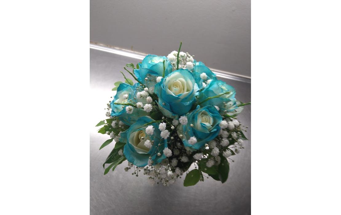 Muistotilaisuuden kukat Vaaleansininen kimppu