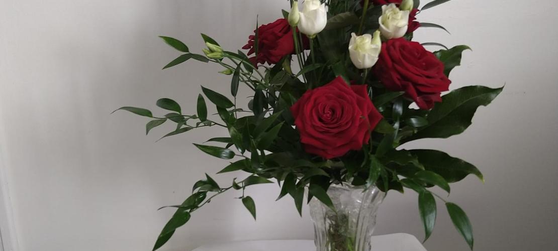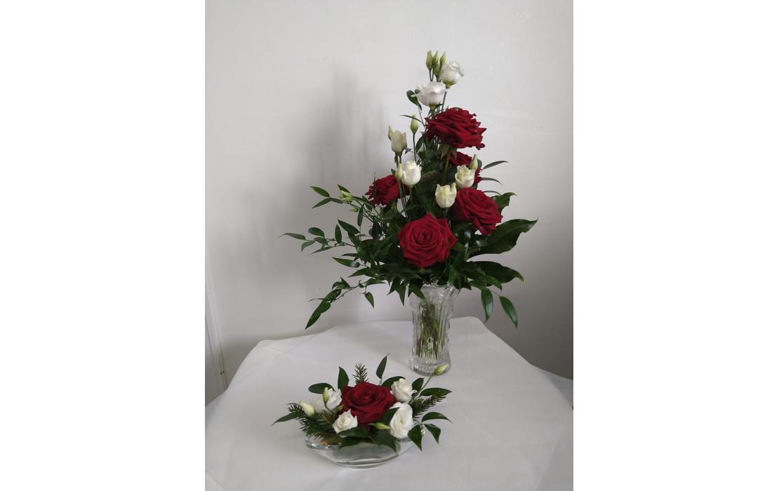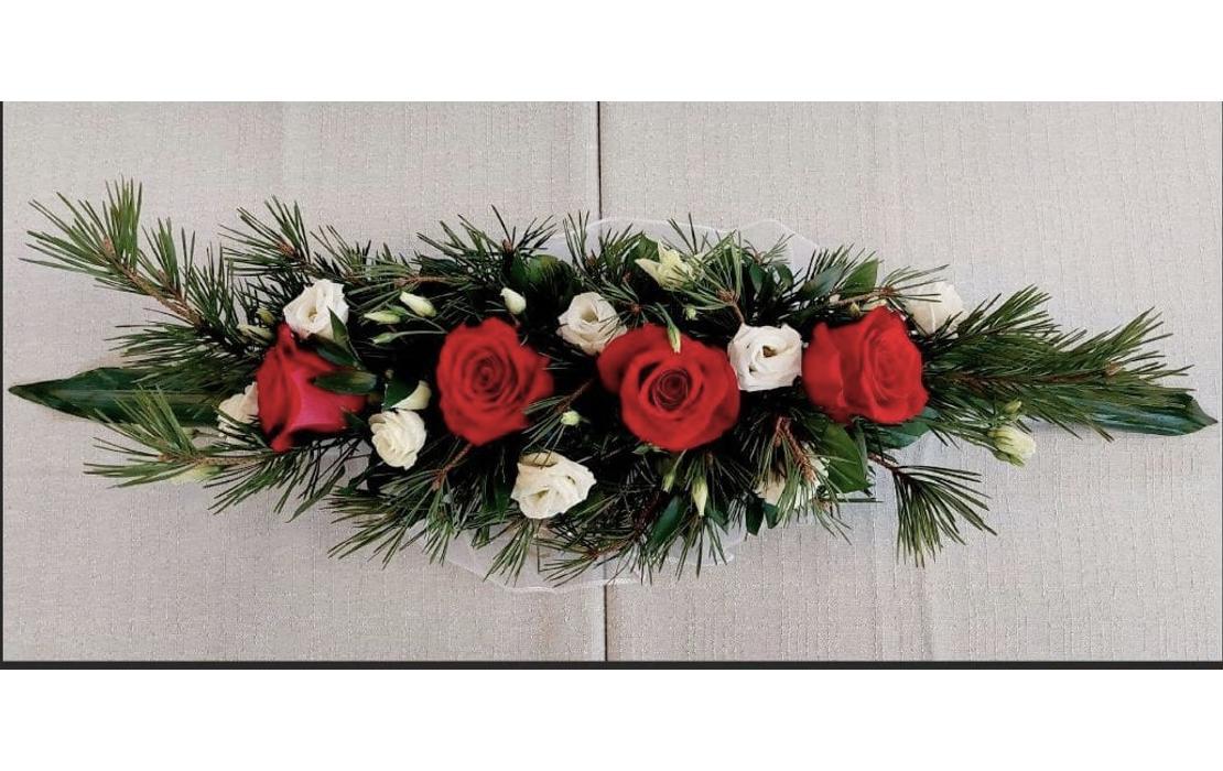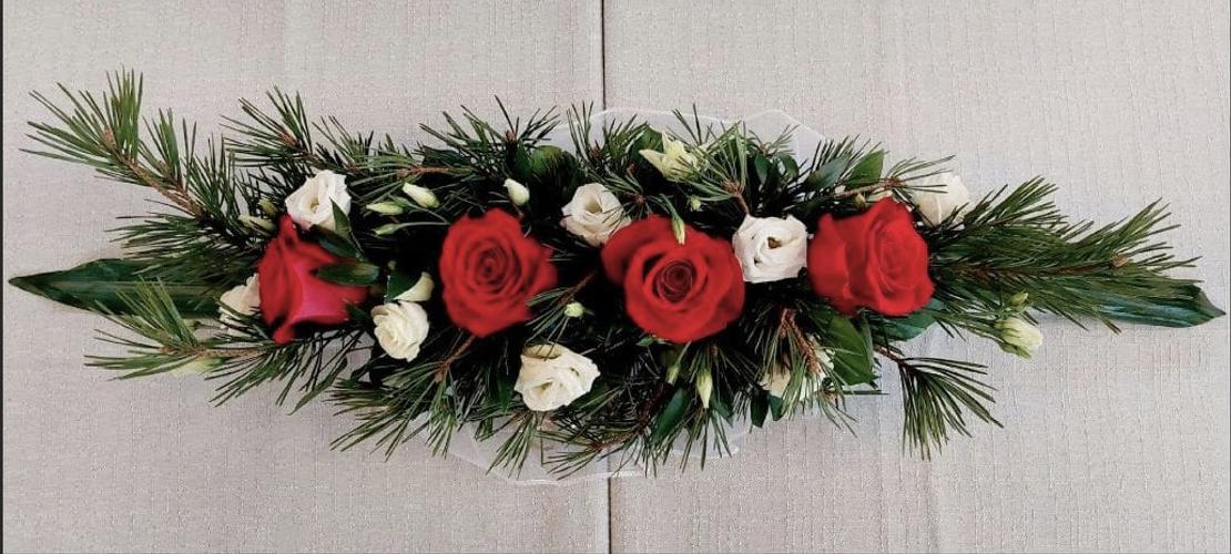 Muistotilaisuuden kukat Ruusut pitkä asetelma