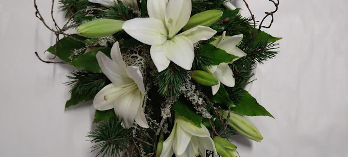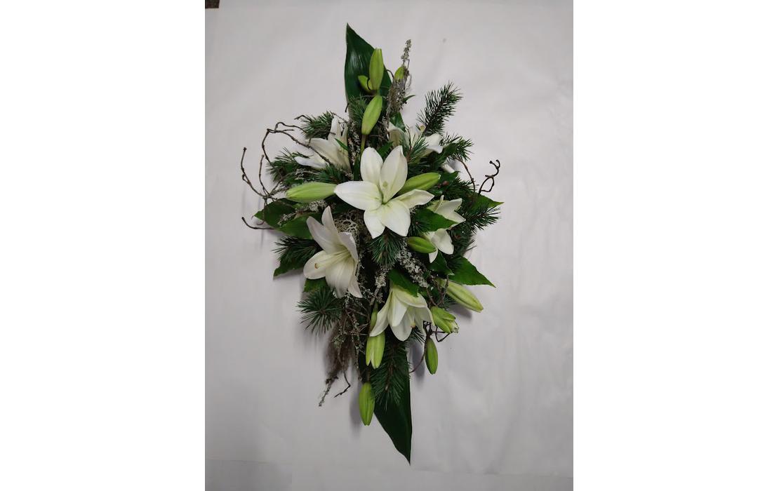 Muistotilaisuuden kukat Valkea lilja-asetelma