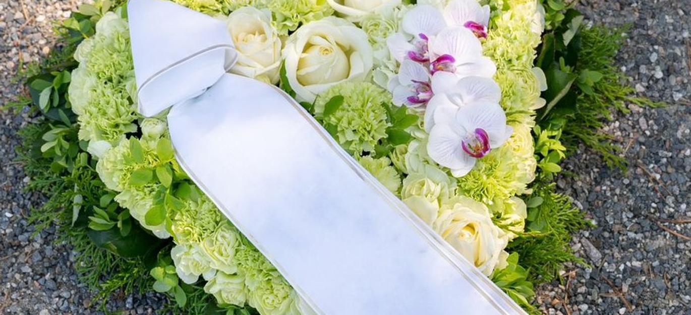 Vihreäsävyinen kokonaan kukitettu sydän. Pohjan halkaisija 43 cm, saatavana myös 32 cm pohjaan tehtynä 140,00 €.