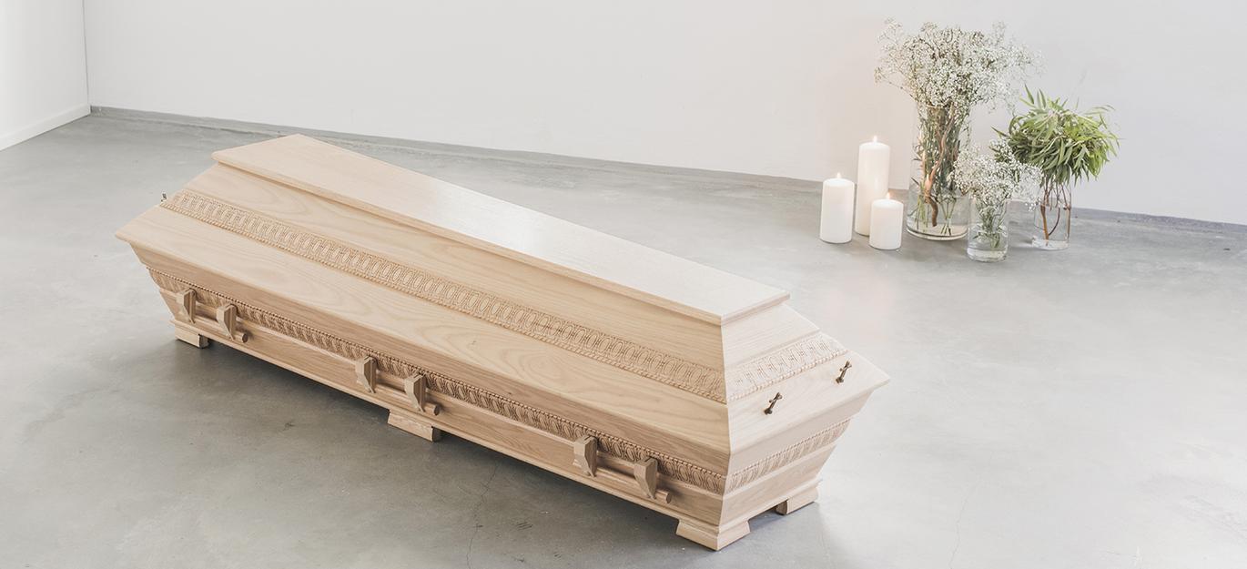 Hillittyä jyhkeän puun kauneutta vaaleassa tammi sarkofagissa.