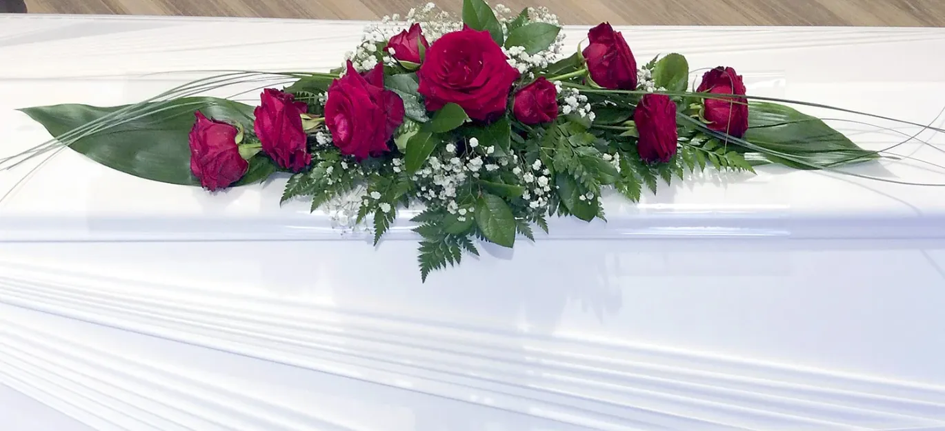 Ruusuista toteutettu siro linjanen arkkulaite.